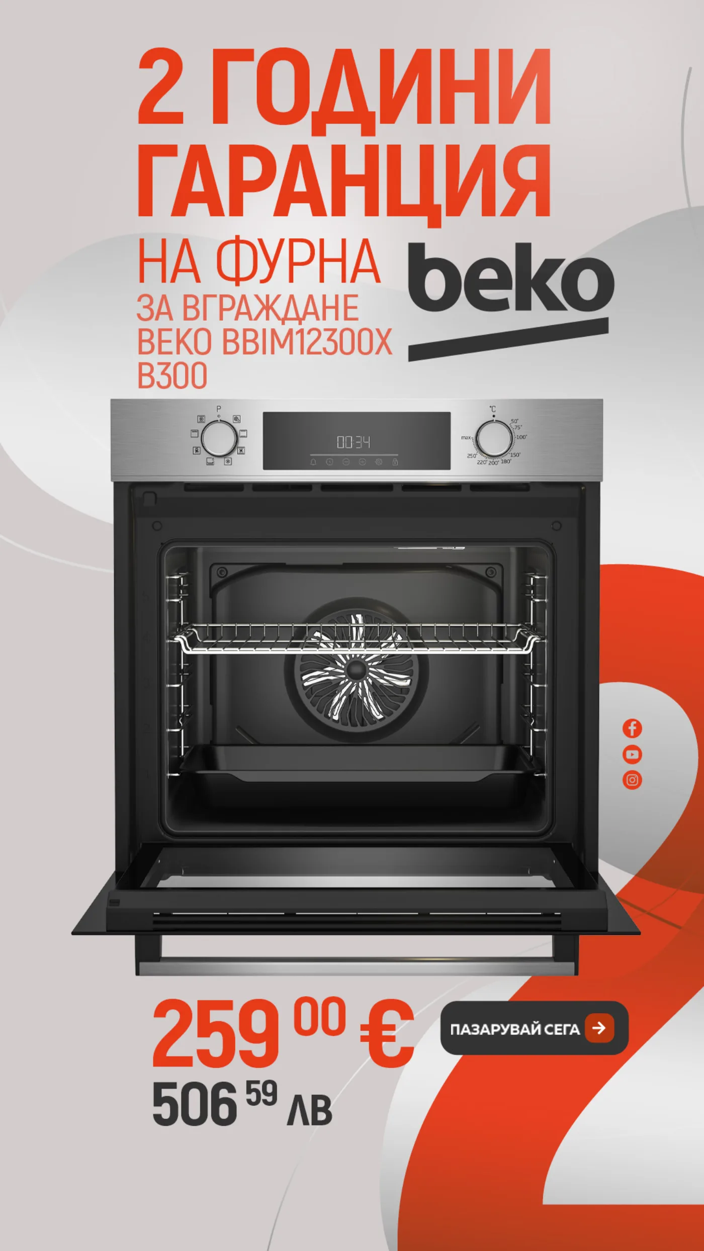 Капацитет 65 литра – достатъчно голям, за да приготвяш цели тави, пици или печено месо.