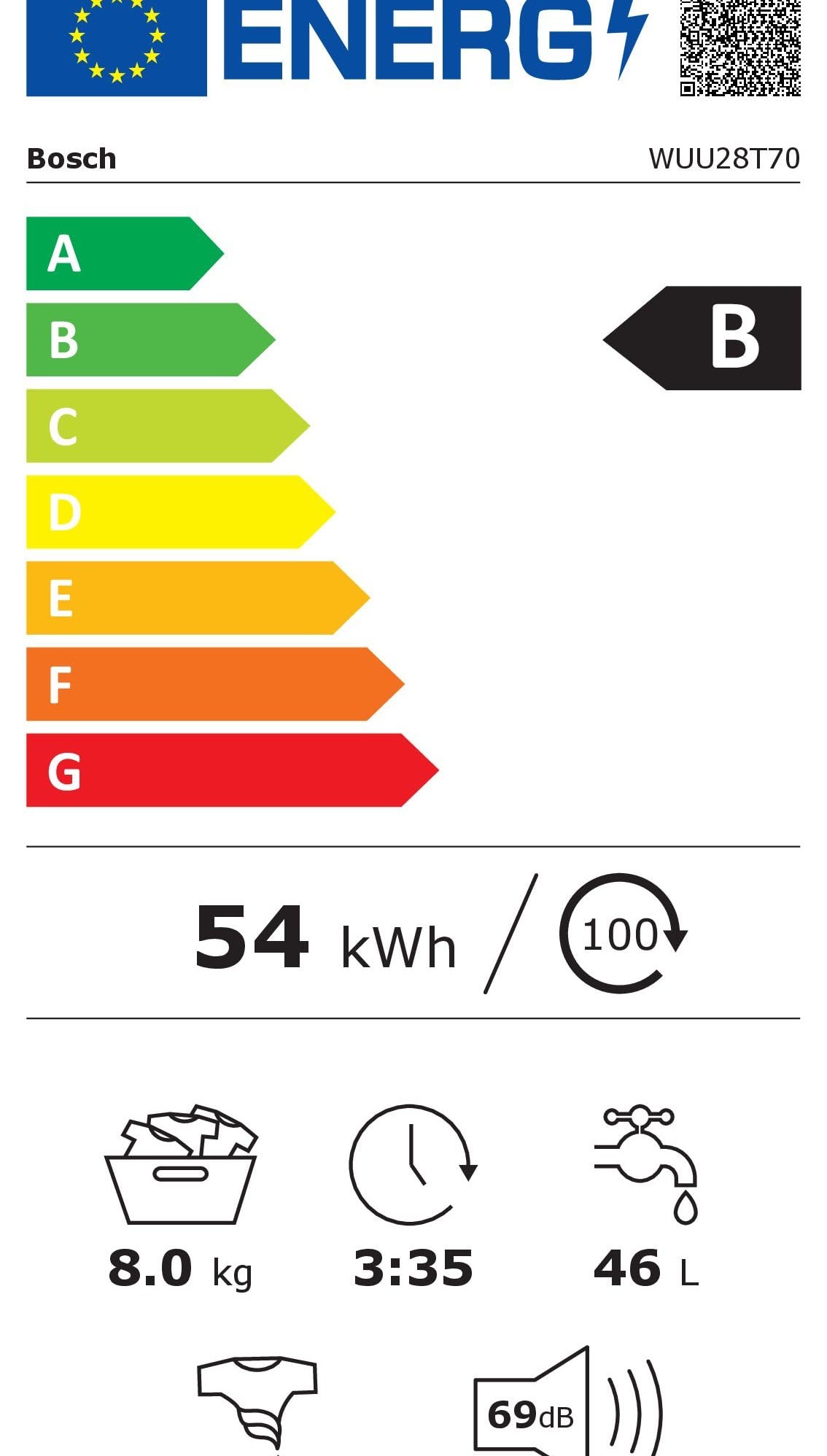 Kонсумация на енергия: 54 квт/ч на 100 цикъла