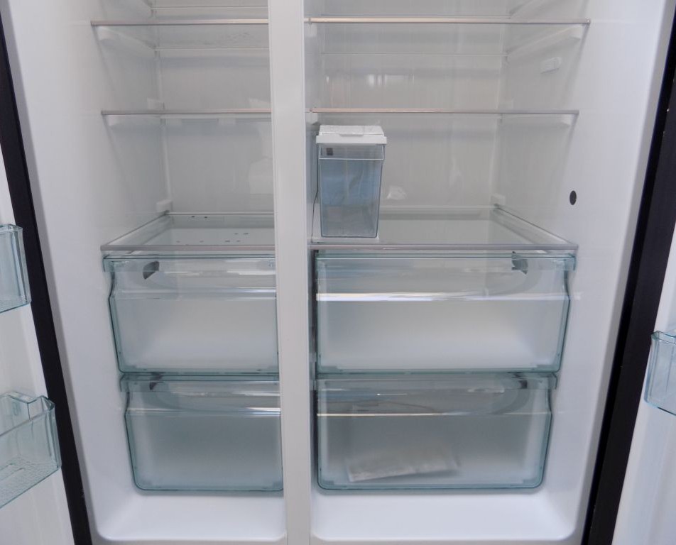 Ледогенератор с диспенсър за вода: С ледогенератора с сензорно управление и диспенсър за вода можете да се наслаждавате на охладена вода, натрошен лед и кубчета лед, без да е необходимо да свързвате хладилника към водопровода. А благодарение на особено тънкия си дизайн, той не заема твърде много място в хладилника.