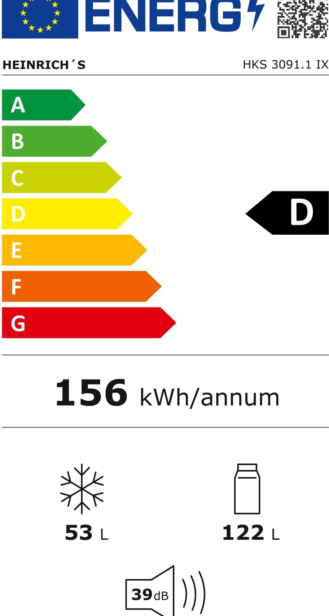 Комбинираният хладилник с фризер Heinrichs има общ нетен обем от 175 литра (122 л/53 л) за охлаждане и замразяване. Съдържание на кутията: 3 x рафта на вратата, 3 x стъклени рафта, 3 x екстра големи фризерни кутии, 1 x тава за зеленчуци, 1 x тава за яйца, 1 x тава за лед.