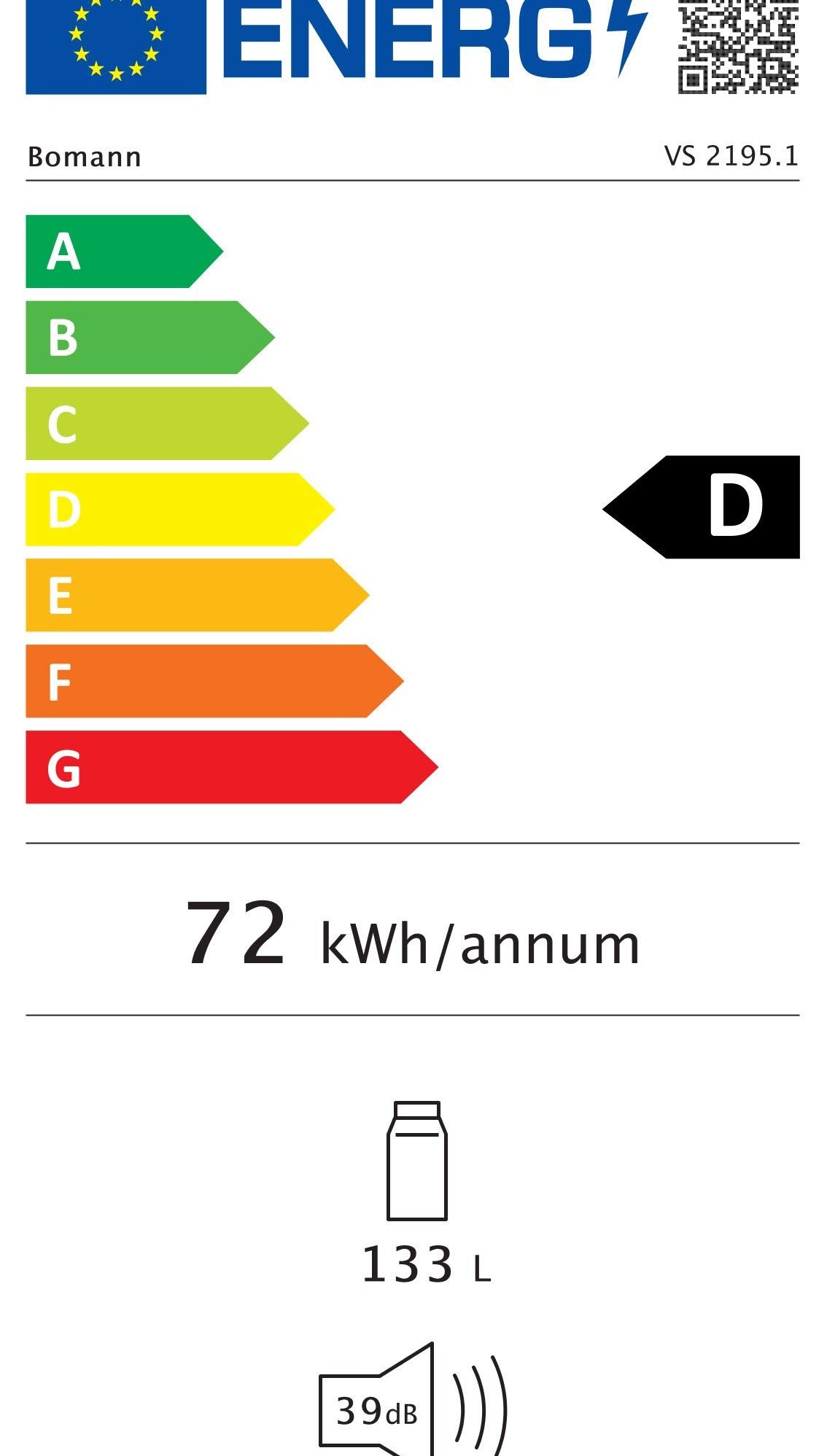 Хладилникът Bomann е с капацитет от 133 литра. С 3-те рафта на вратата, 2-та рафта за яйца и прозрачната тава за зеленчуци, имате широка гама от възможности за съхранение.