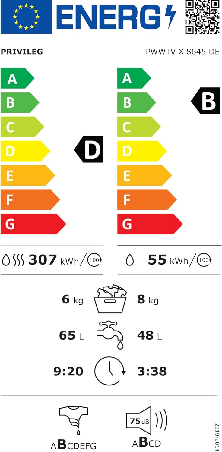 Енергиен клас: B клас за пералнята + D клас за сушилнята