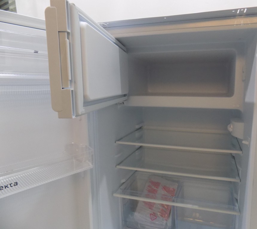 Комбинираният хладилник с фризер предлага капацитет от 104 литра в хладилното отделение и 17 литра във фризерното отделение и се побира във всяка ниша с ширина от 54 см и височина от 88 см.